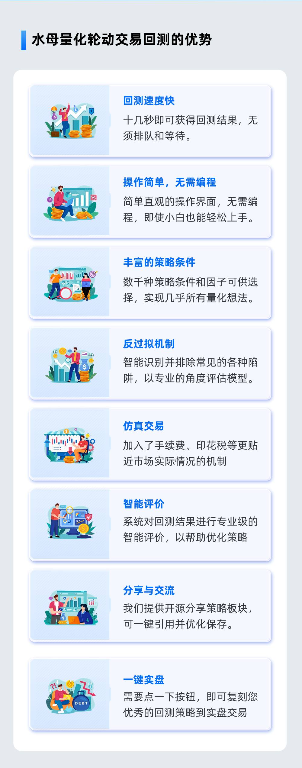 我們僅提供量化監(jiān)控及交易機(jī)托管服務(wù),不會(huì)對(duì)證券市場(chǎng)秩序與交易公平構(gòu)成影響,業(yè)務(wù)流程符合法規(guī)與監(jiān)管的要求。