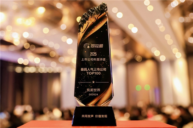 完美世界獲評(píng)同花順“最具人氣上市公司TOP100”獎(jiǎng)項(xiàng)