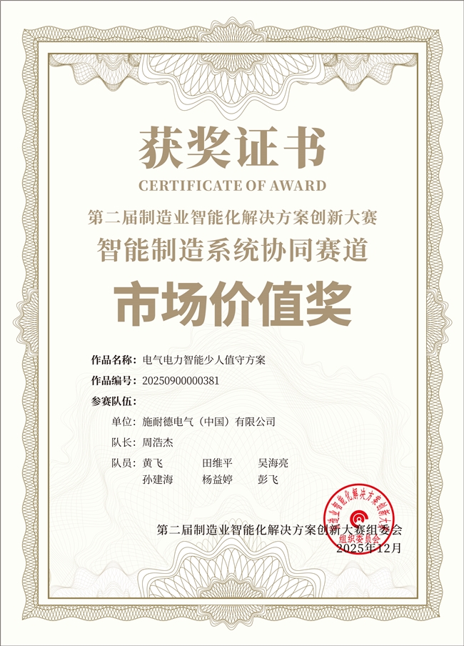 施耐德電氣榮獲2025制造業(yè)智能化解決方案創(chuàng)新大賽“市場(chǎng)價(jià)值獎(jiǎng)”