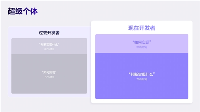 他們不再是代碼的執(zhí)行者,而是業(yè)務(wù)的翻譯官與創(chuàng)新的定義者。真正難以被替代的,不是敲代碼的速度,而是對業(yè)務(wù)本質(zhì)的理解能力與將想法快速落地的能力。在 AI 的杠桿放大下,這類開發(fā)者的價(jià)值被成倍釋放,從“執(zhí)行單元”進(jìn)化為真正的“超級(jí)個(gè)體”。