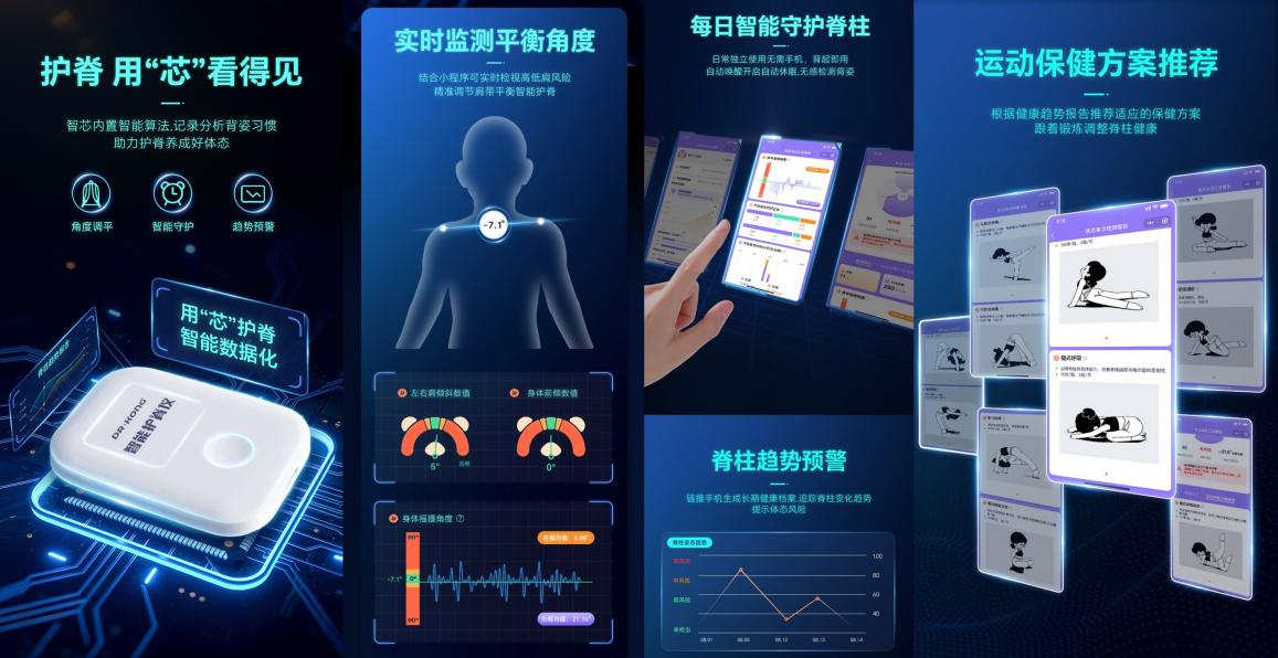 為進一步幫助家長動態(tài)關注青少年兒童脊柱發(fā)育情況,及時糾正不良姿勢,江博士無壓護脊書包更搭載了智能護脊儀。家長可通過小程序實時監(jiān)測孩子的高低肩角度、左右肩傾斜數(shù)值等核心體態(tài)數(shù)據(jù),精準掌握日常體態(tài)變化。同時智能護脊儀還能基于實時監(jiān)測結果和智能分析,追蹤脊柱變化趨勢,提示可能存在的不良體態(tài),并推薦合適的保健運動方案,引導孩子通過科學鍛煉養(yǎng)成良好體態(tài),實現(xiàn)脊柱健康的主動管理。