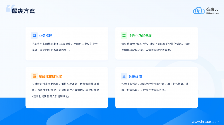 在這場本土化數(shù)字轉(zhuǎn)型的浪潮中,作為國內(nèi)HR數(shù)字化領(lǐng)域的代表性力量,穩(wěn)贏云正是憑借對中大型企業(yè)管理邏輯的深刻洞察,構(gòu)建了“產(chǎn)品+交付”的雙輪驅(qū)動體系。